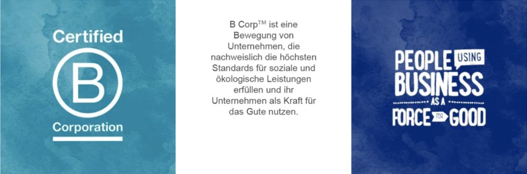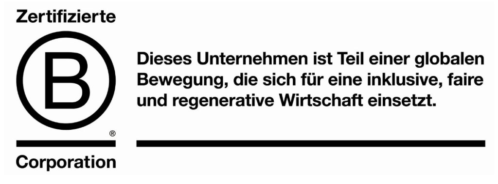 Die B Corp Zertifizierung zeigt transparent nachvollziehbar, dass wir auf dem Weg sind, die hohen Standards in Bezug auf unser soziales und ökologisches Engagement, unserer Unternehmenstransparenz und unserer rechtlichen Verantwortung zu erfüllen. Nachdem wir den strengen Zertifizierungsprozess erfolgreich durchlaufen haben, schließen wir uns einer globalen Gemeinschaft von Unternehmen an, die wirtschaftlichen Erfolg mit sozialer Gerechtigkeit und nachhaltigem Umweltschutz in Einklang bringen wollen.